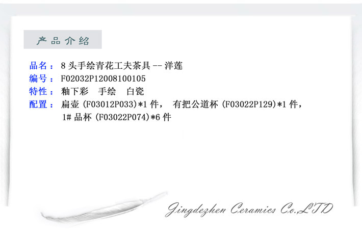 8頭手繪青花工夫茶具洋蓮