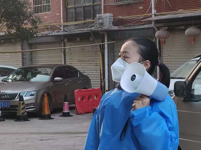 在這場(chǎng)沒(méi)有硝煙的戰(zhàn)“疫”中,邵建華與邵燕翎既是父女,更是“戰(zhàn)友”。父親每日在現(xiàn)場(chǎng)維持秩序,女兒每天拿著喇叭挨家挨戶(hù)的督促居民下樓做核酸,幫助老年人出示核酸碼等工作。父女倆各盡其責(zé)、互相鼓勵(lì)、并肩作戰(zhàn),用最樸實(shí)的行動(dòng)筑牢疫情防線,他們和大家一樣,希望通過(guò)共同努力,早日戰(zhàn)勝這場(chǎng)疫情阻擊戰(zhàn)。